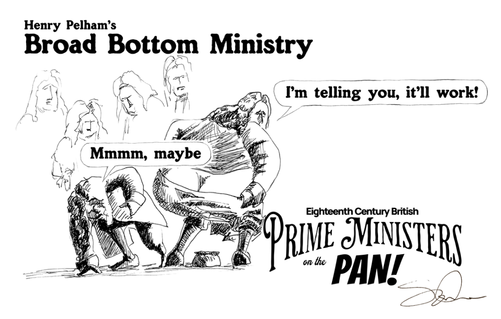 - Broad Bottom Ministry: Pelham’s administration is commonly referred to as the Broad Bottom Ministry after he brought some Tories into his Whig-led administration, a clever, and necessary, political manoeuvre to force George II to give up his preference for the powerful John Carteret, enabling Pelham to create a Government he could control.