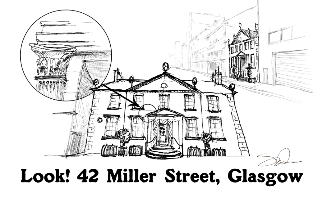 Walking towards the Clyde, away from George Square, you’ll find the buildings on either side rise up above you. These are high-ceilinged properties of four and more floors with frontages that most definitely bring to mind New York in the 1930s. Miller Street today doesn’t offer glamorous vistas, but two plus centuries ago this street would certainly have been a highly desirable place to live. If you could afford to build or buy a home in this row of villas then you were likely someone who’d made their fortune in the American colonies. Probably in tobacco.
