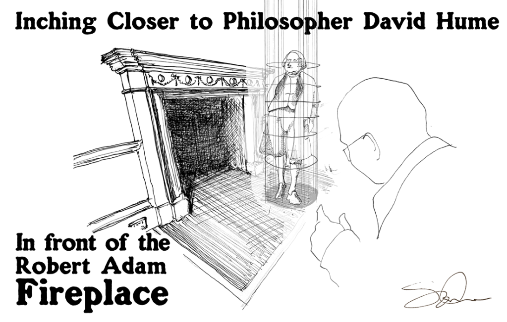 And of course, when I step out into Queen Street, that’s a major highway in the design of Edinburgh’s New Town, architected by James Craig and on which work began in 1769. So Eighteenth century-a-go-go for me that afternoon. Late that evening, after my wife went to bed, I sat on the sofa with the two dogs and read through the promo leaflets I lifted from the Royal College earlier. It says this: “During his residency Ord [Robert Ord, Chief Baron of the Scottish Court of the Exchequer] entertained many notable members of Edinburgh society in these rooms, including the philosopher and essayist David Hume.” I’m floored!